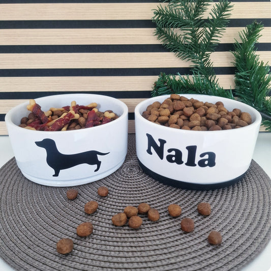 Aufkleber für Futternapf | Dackel mit Wunschtext
