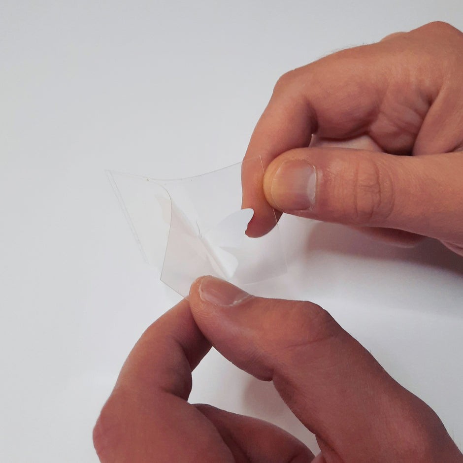 Entferne die hintere Schutzfolie vorsichtig ab und positioniere die Bügelfolie auf deine gewünschten Flächen. Bügel gleichmäßig auf die Folie, jeweils für ca. 15 Sekunden.
